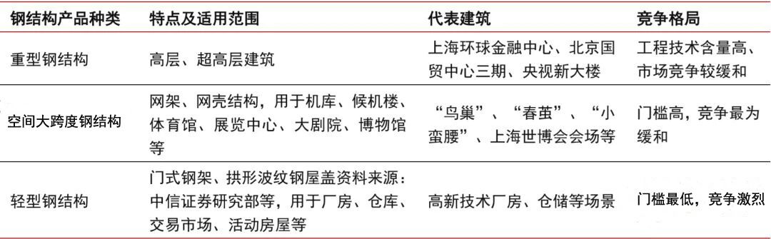 目前國內鋼(gang)結(jie)(jie)構行業(ye)市場(chang)(chang)(chang)化程度高,行業(ye)集中度低,同質化競(jing)爭嚴(yan)重。根(gen)據工藝和(he)用途,鋼(gang)結(jie)(jie)構行業(ye)又可分為(wei)(wei)輕鋼(gang)結(jie)(jie)構、多高層鋼(gang)結(jie)(jie)構、空間(jian)鋼(gang)結(jie)(jie)構三(san)個子行業(ye)。以廠房為(wei)(wei)代表(biao)的輕鋼(gang)領域,應用廣泛(fan),技術(shu)(shu)相(xiang)對(dui)(dui)成熟(shu),進(jin)入(ru)壁壘相(xiang)對(dui)(dui)較(jiao)低,市場(chang)(chang)(chang)分散且競(jing)爭較(jiao)為(wei)(wei)激烈;多高層鋼(gang)結(jie)(jie)構領域,由(you)于鋼(gang)結(jie)(jie)構工程技術(shu)(shu)含(han)量(liang)高,制作(zuo)安裝難(nan)度較(jiao)大(da),產(chan)品(pin)質量(liang)及精度要求高,競(jing)爭較(jiao)輕鋼(gang)市場(chang)(chang)(chang)緩和(he);而空間(jian)結(jie)(jie)構主要運用于大(da)型體育場(chang)(chang)(chang)館、劇院、機場(chang)(chang)(chang)、火車站等大(da)跨度公共(gong)建(jian)筑,對(dui)(dui)資(zi)(zi)金資(zi)(zi)質、產(chan)品(pin)質量(liang)和(he)精度有著(zhu)嚴(yan)格要求,進(jin)入(ru)門(men)檻高,在三(san)者中競(jing)爭較(jiao)為(wei)(wei)和(he)緩。