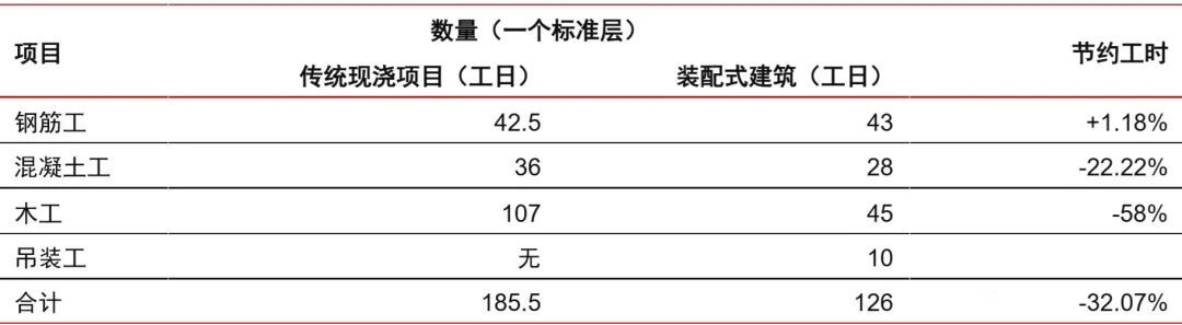 對(dui)于精裝(zhuang)交房的(de)(de)(de)項目,裝(zhuang)配(pei)式建筑(zhu)的(de)(de)(de)部品和(he)構件均(jun)在(zai)工廠(chang)加(jia)工、現場組裝(zhuang),水電(dian)及(ji)內裝(zhuang)修(xiu)均(jun)可以在(zai)主(zhu)體(ti)施(shi)工階(jie)段穿插進(jin)行(xing),這將(jiang)明顯降低了裝(zhuang)配(pei)式建筑(zhu)的(de)(de)(de)總工期。同時,隨著國內的(de)(de)(de)裝(zhuang)配(pei)式建筑(zhu)工藝不(bu)斷成(cheng)熟,工期將(jiang)進(jin)一步縮短。