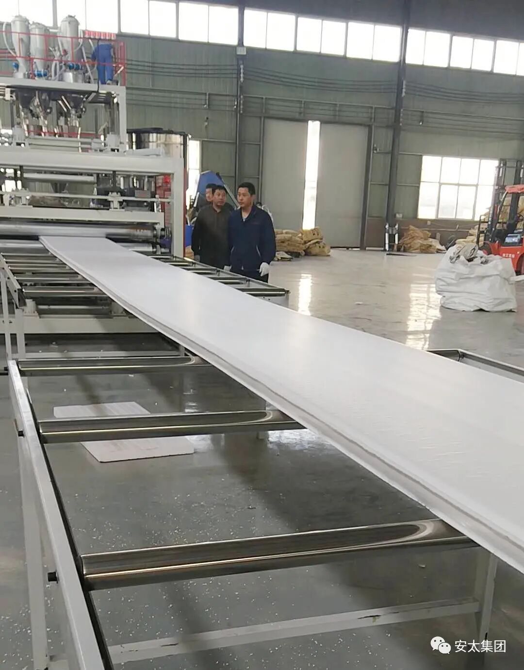 2020年10月22日上午,隨著隆隆的機器聲,籌劃近一年的二氧化碳擠塑板設備在河南安太上萬平(ping)米的大廠房里(li)正式啟動。進入(ru)廠區,首先(xian)映入(ru)眼簾(lian)的(de)是右邊高(gao)高(gao)矗立的(de)巨(ju)無(wu)霸(ba)—全自動喂(wei)料系統,晶瑩剔(ti)透的聚苯乙烯顆粒就是通過這個(ge)“大塊頭”開始了它(ta)的神奇變身之(zhi)旅。