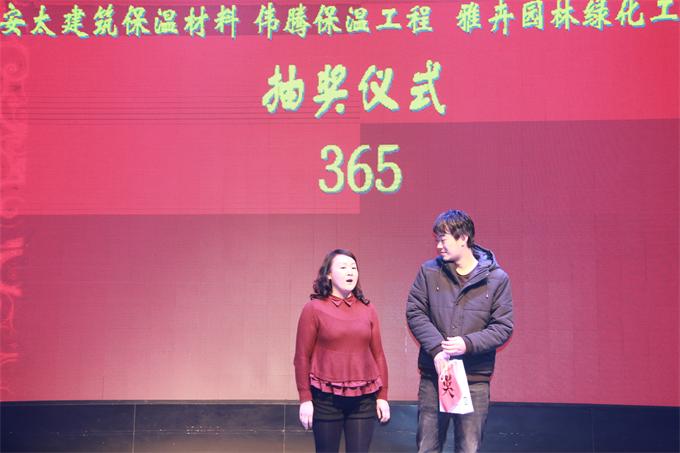 在(zai)安太(tai)建筑保溫材料有限公(gong)司(si)劉總熱情洋溢的(de)(de)(de)講話中,拉開(kai)了安太(tai)公(gong)司(si)新春年會(hui)(hui)的(de)(de)(de)序(xu)幕(mu),精彩(cai)絕倫的(de)(de)(de)節(jie)目(mu)演出,振奮鼓舞(wu)的(de)(de)(de)員工(gong)(gong)頒獎,激動(dong)人心的(de)(de)(de)幸運抽獎,將晚會(hui)(hui)的(de)(de)(de)氣氛推(tui)向***。安太(tai)公(gong)司(si),洛陽偉騰保溫工(gong)(gong)程公(gong)司(si),洛陽雅卉園林工(gong)(gong)程公(gong)司(si),安太(tai)已經(jing)開(kai)始向著集團化的(de)(de)(de)發展邁進!